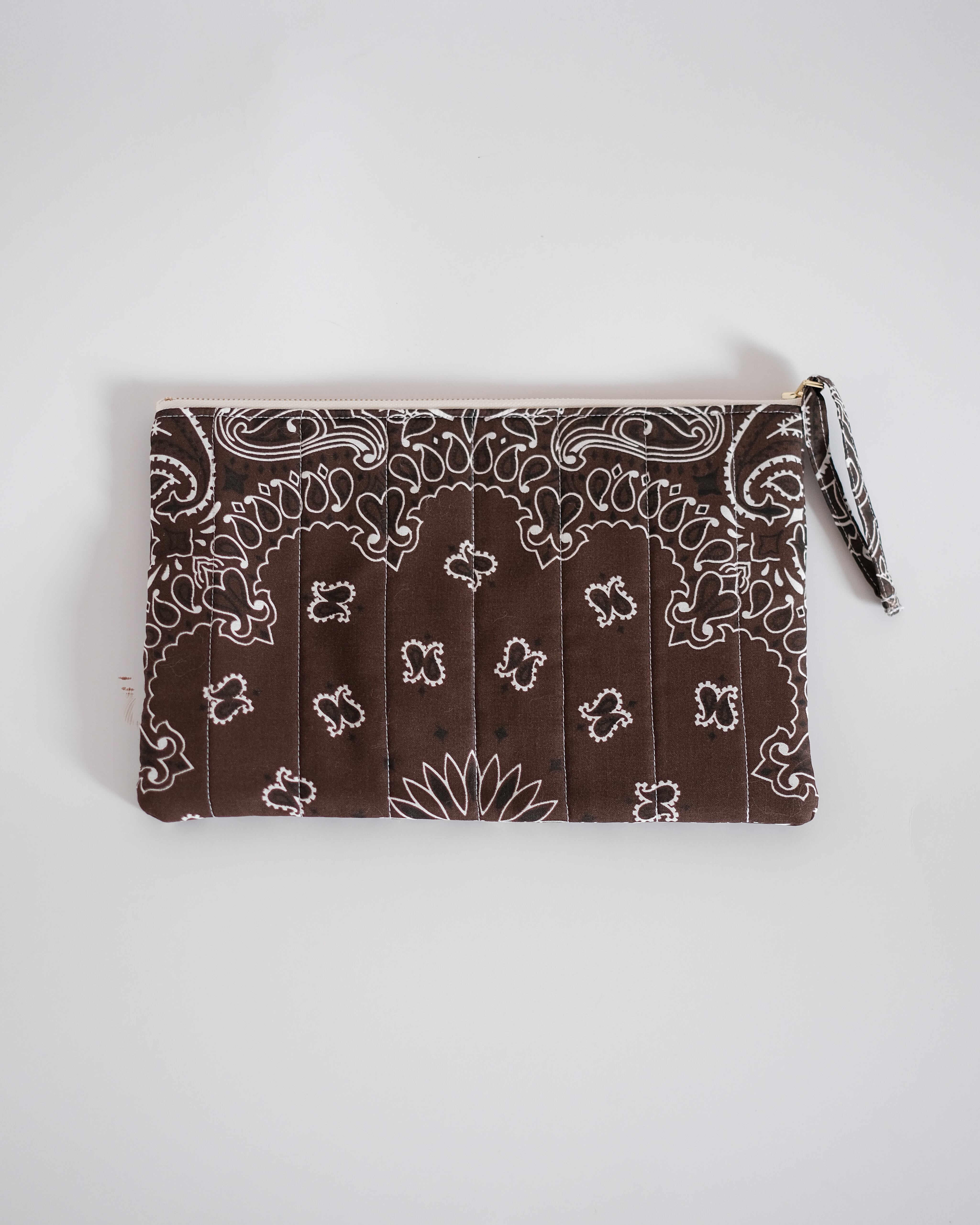 HAV-A-HANK made in USAのバンダナを表面に、撥水ナイロンリップストップを裏面に使用したちょうど良いサイズのベーシックなポーチを作成しました。