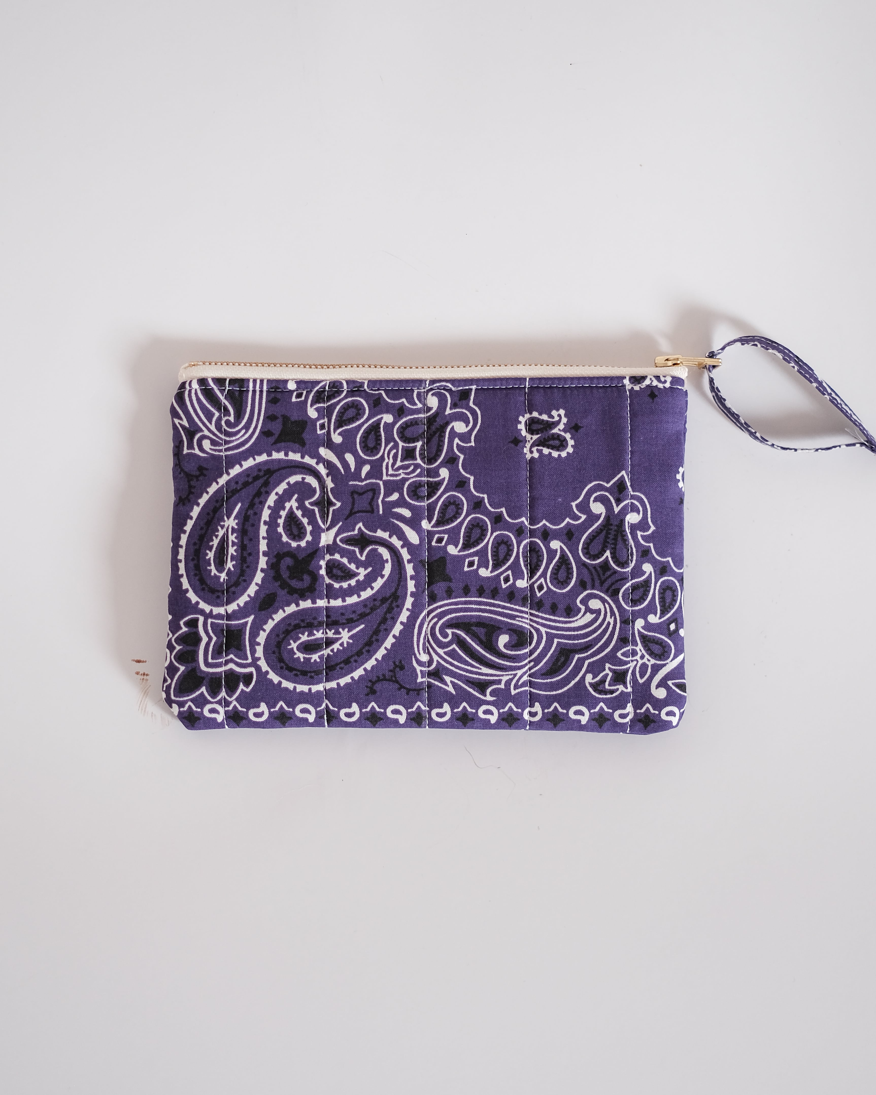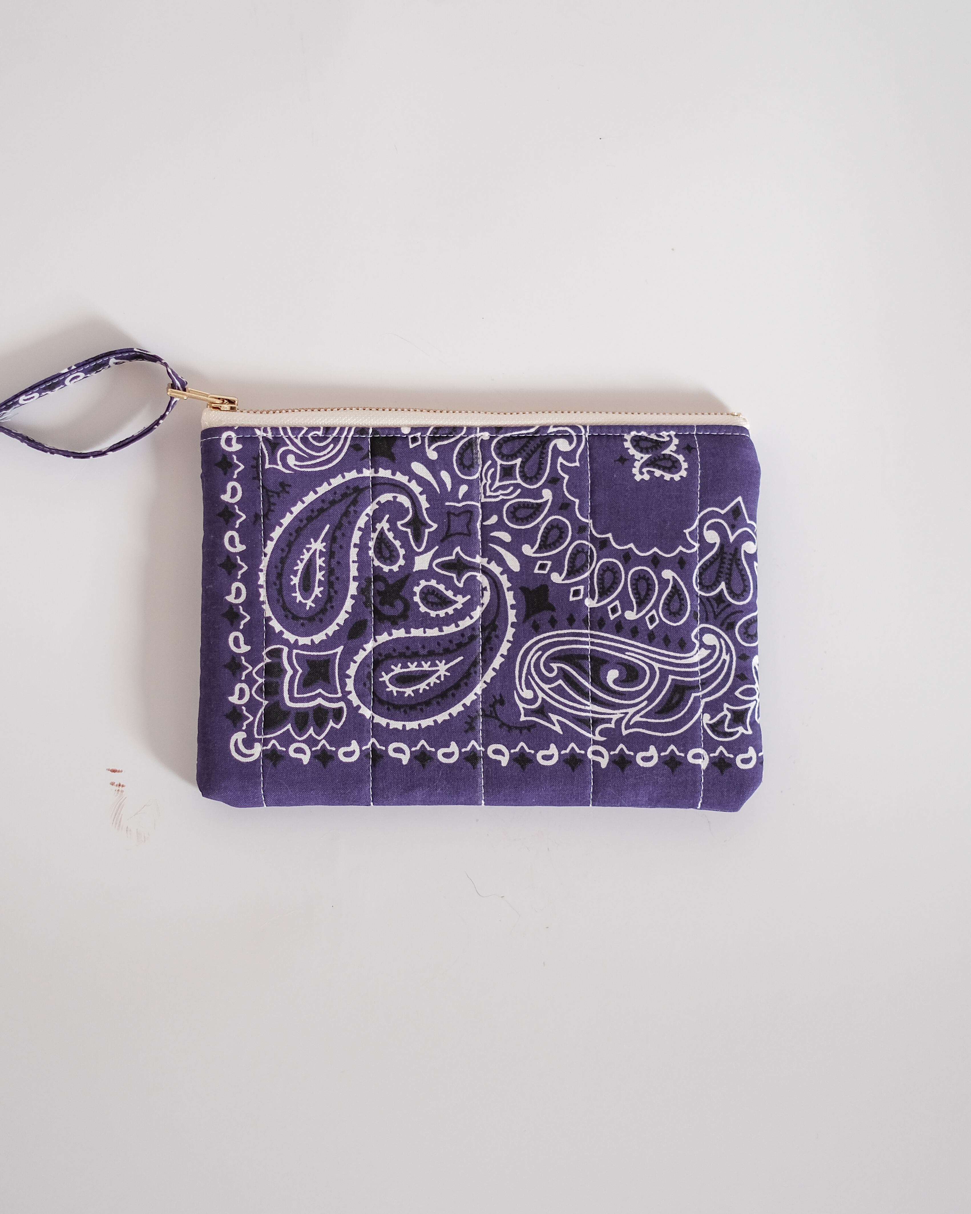 HAV-A-HANK made in USAのバンダナを表面に、撥水ナイロンリップストップを裏面に使用したちょうど良いサイズのベーシックなポーチを作成しました。