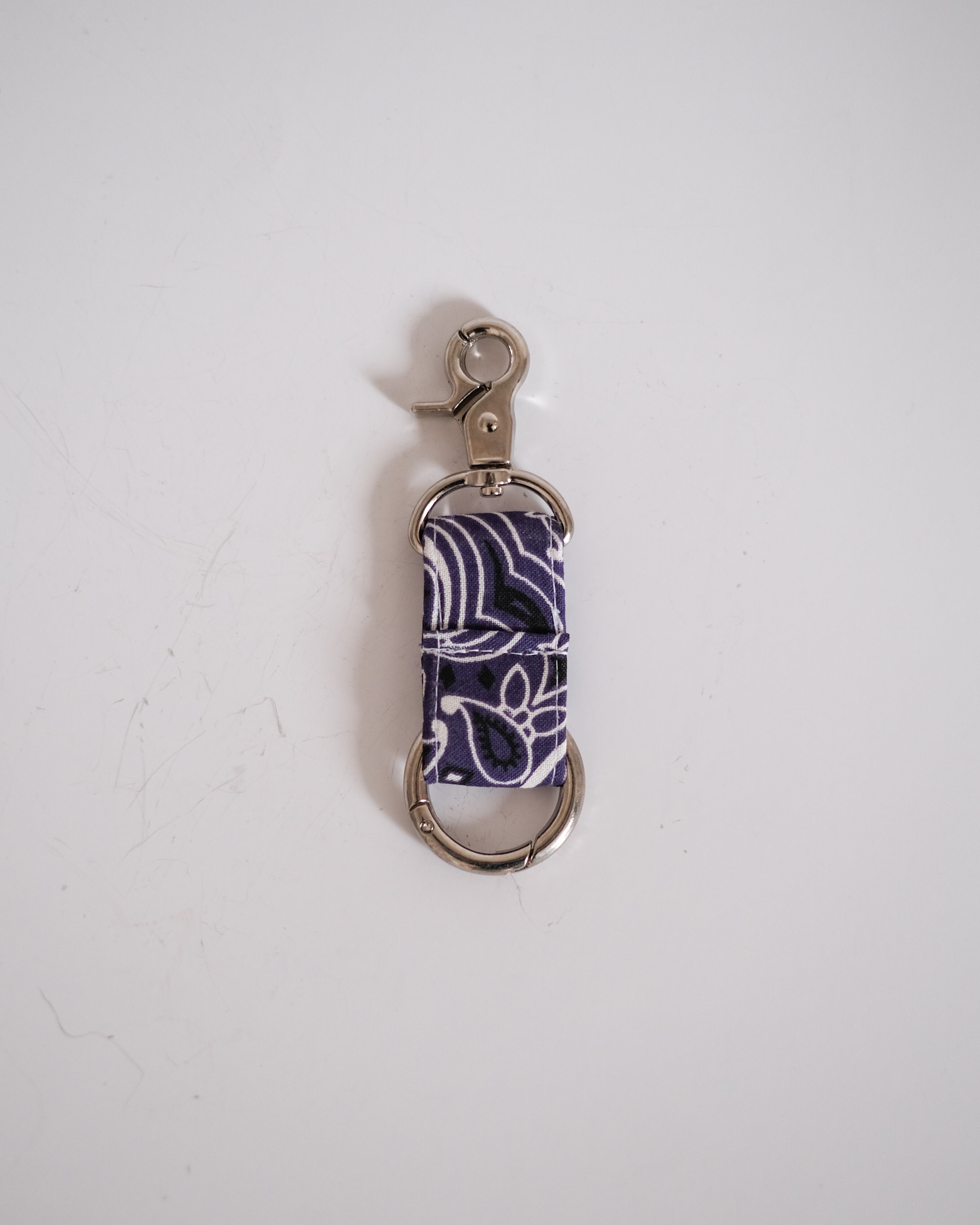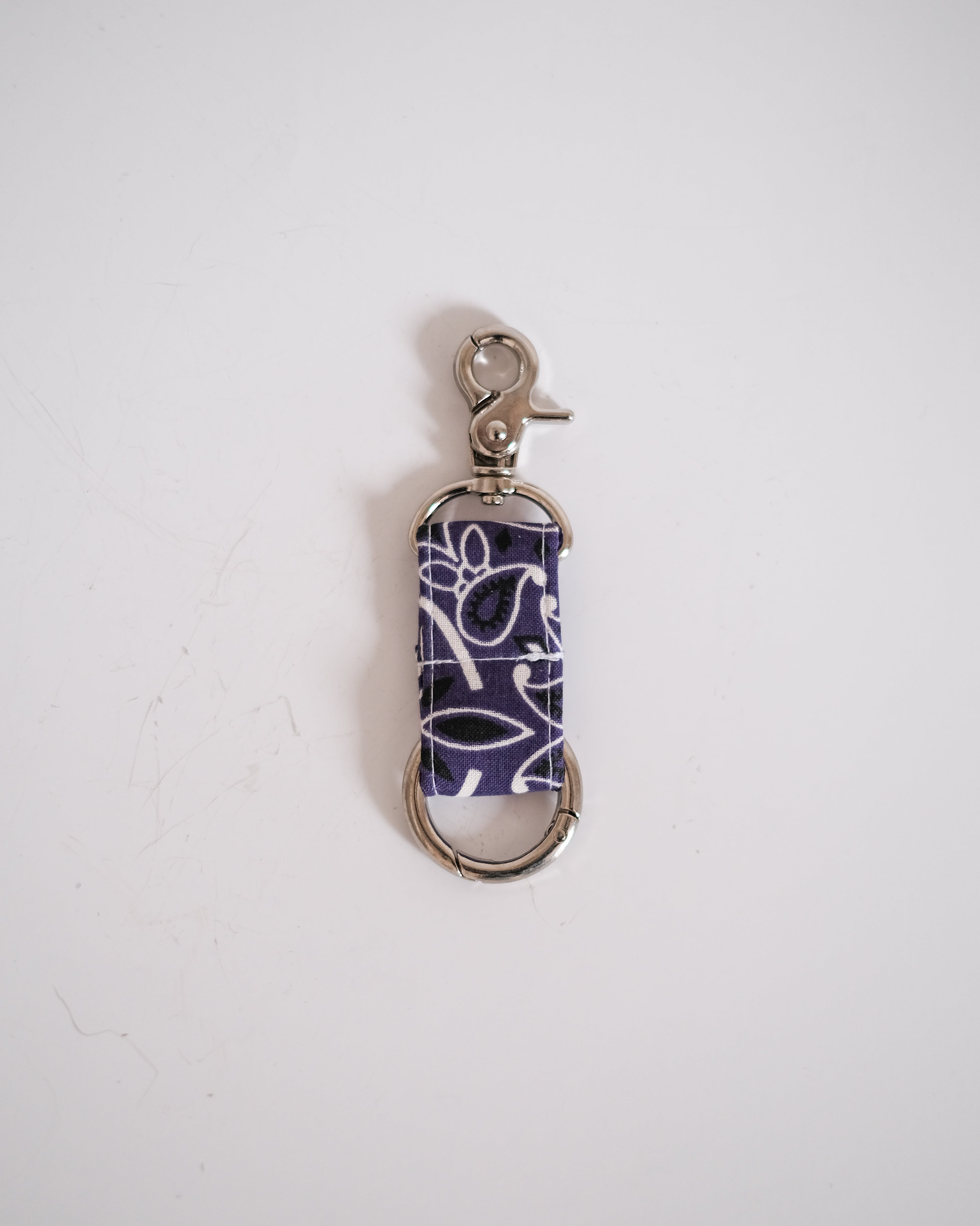 HAV-A-HANK made in USAのバンダナと芯地に鞄の持ち手に使うベルトをもちいた耐久性も備えた使い勝手の良いキーチェーンを作成しました。